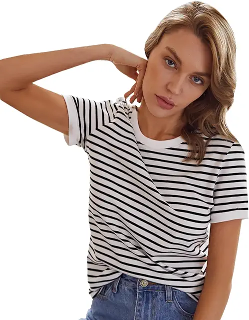 Stripe Printed Short Sleeve Regular Fit Top for Women