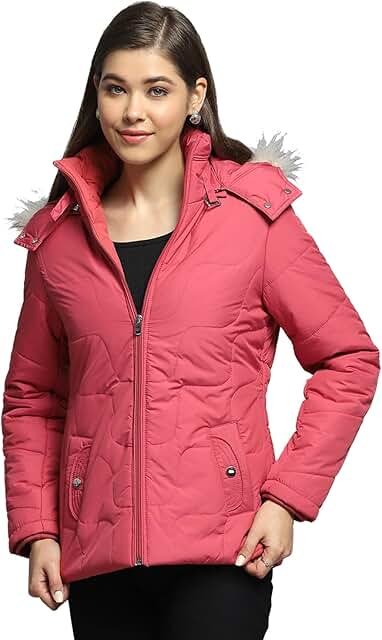 Womens Self Design Pink Detachable Hood Full Sleeve Jacket